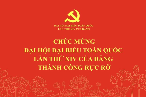 Chúc mừng Đại hội đại biểu toàn quốc lần thứ XIV của Đảng thành công rực rỡ 16:46 23/01/2026 | 136 Đại hội đại biểu toàn quốc lần thứ XIV của Đảng thành công rực rỡ. Xin gửi lời chúc mừng đến Đại hội Đại biểu toàn quốc lần thứ XIV của Đảng! Đồng thời chúc mừng các đồng chí đã được tín nhiệm bầu vào Ban Chấp hành Trung ương Đảng khóa XIV để dẫn dắt đất nước bước vào kỷ nguyên phát triển mới.