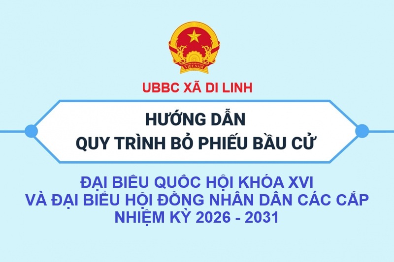 Hướng dẫn quy trình bỏ phiếu bầu cử ĐBQH khoá XVI và đại biểu HĐND các cấp nhiệm kỳ 2026-2031 09:48 27/02/2026 | 23 Xã Di Linh hướng dẫn quy trình bỏ phiếu bầu cử ĐBQH khoá XVI và đại biểu HĐND các cấp nhiệm kỳ 2026-2031