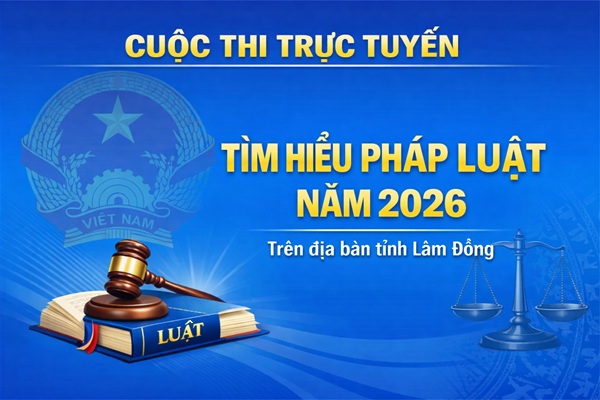 Thông tin Tham gia Cuộc thi trực tuyến “Nâng cao nhận thức phòng tránh tai nạn bom mìn vật nổ sau chiến tranh ở Việt Nam”  17:46 13/04/2026 |   57 Lâm Đồng tổ chức Cuộc thi trực tuyến tìm hiểu pháp luật năm 2026  11:32 13/04/2026 |   75 Phân cấp cho cơ quan, người có thẩm quyền thực hiện nhiệm vụ, quyền hạn được phân cấp trong lĩnh vực đất đai  08:36 02/04/2026 |   65 Thông báo về việc kê khai thuế năm 2026 đối với hộ kinh doanh, cá nhân kinh doanh có doanh thu từ 500 triệu đồng/năm trở xuống  16:22 01/04/2026 |   72