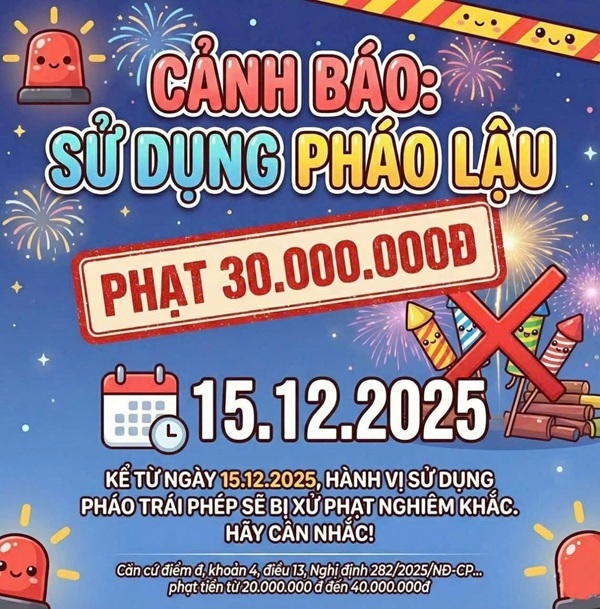Nghị định số 282/2025/NĐ-CP của Chính phủ quy định xử phạt vi phạm hành chính trong lĩnh vực an ninh, trật tự, an toàn xã hội; phòng, chống tệ nạn xã hội; phòng, chống bạo lực gia đình (thay thế Nghị định số 144/2021/NĐ-CP) chính thức có hiệu lực kể từ ngày 15/12/2025. Theo đó, tại khoản 4 Điều 13 quy định phạt tiền từ 20.000.000 đồng đến 40.000.000 đồng đối với các hành vi như: hướng dẫn, huấn luyện trái phép cách thức chế tạo, sản xuất, sử dụng pháo; lợi dụng việc sử dụng pháo để xâm phạm an ninh, trật tự, an toàn xã hội; mang pháo, thuốc pháo trái phép vào, ra khỏi lãnh thổ Việt Nam hoặc vào khu vực cấm; trao đổi, cho, tặng, gửi, mượn, cho mượn, thuê, cho thuê, cầm cố pháo nổ, thuốc pháo; sử dụng trái phép hoặc chiếm đoạt pháo nổ; giao pháo nổ cho tổ chức, cá nhân không đủ điều kiện theo quy định.