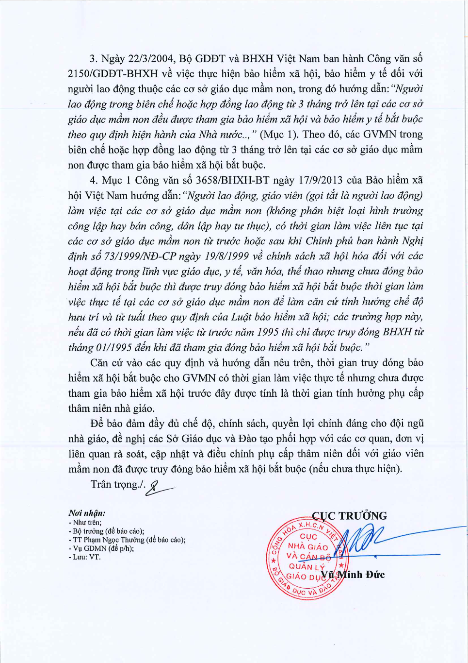 Y tế - Giáo dục Công văn 943/NGCBQLGD-CSNGCB, ngày 03/07/2025 về việc tính phụ cấp thâm niên giáo viên mầm non được truy đóng bảo hiểm xã hội bắt buộc Your browser does not support the audio element.   10/10/2025 10:41 |   30 |  Công văn 943/NGCBQLGD-CSNGCB, ngày 03/07/2025 về việc tính phụ cấp thâm niên giáo viên mầm non được truy đóng bảo hiểm xã hội bắt buộc