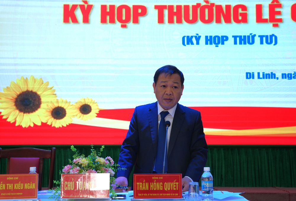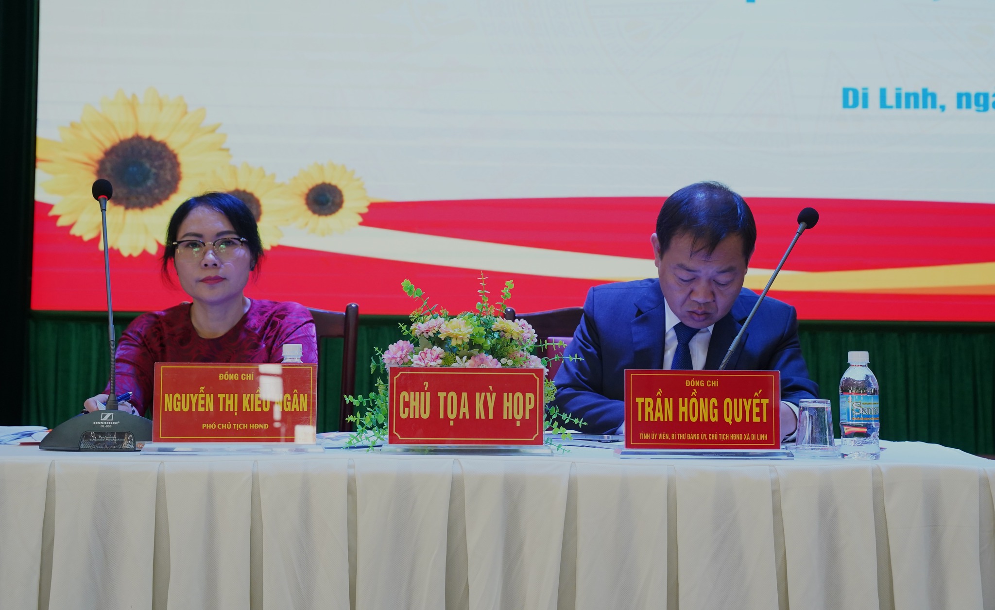 Tham dự kỳ họp có ông Lê Thành Thái, đại biểu Hội đồng Nhân dân tỉnh Lâm Đồng; đồng chí Trần Hồng Quyết - Tỉnh ủy viên, Bí thư Đảng ủy, Chủ tịch HĐND xã; đồng chí Nguyễn Thị Kiều Ngân - Phó Chủ tịch HĐND xã; đồng chí Trần Nhật Thi - Phó Bí thư Đảng ủy, Chủ tịch UBND xã; đồng chí Ka Hương - Chủ tịch Ủy ban Mặt trận Tổ quốc Việt Nam xã; cùng các đồng chí trong Ban Thường vụ Đảng ủy xã và 104 đại biểu HĐND xã Di Linh.