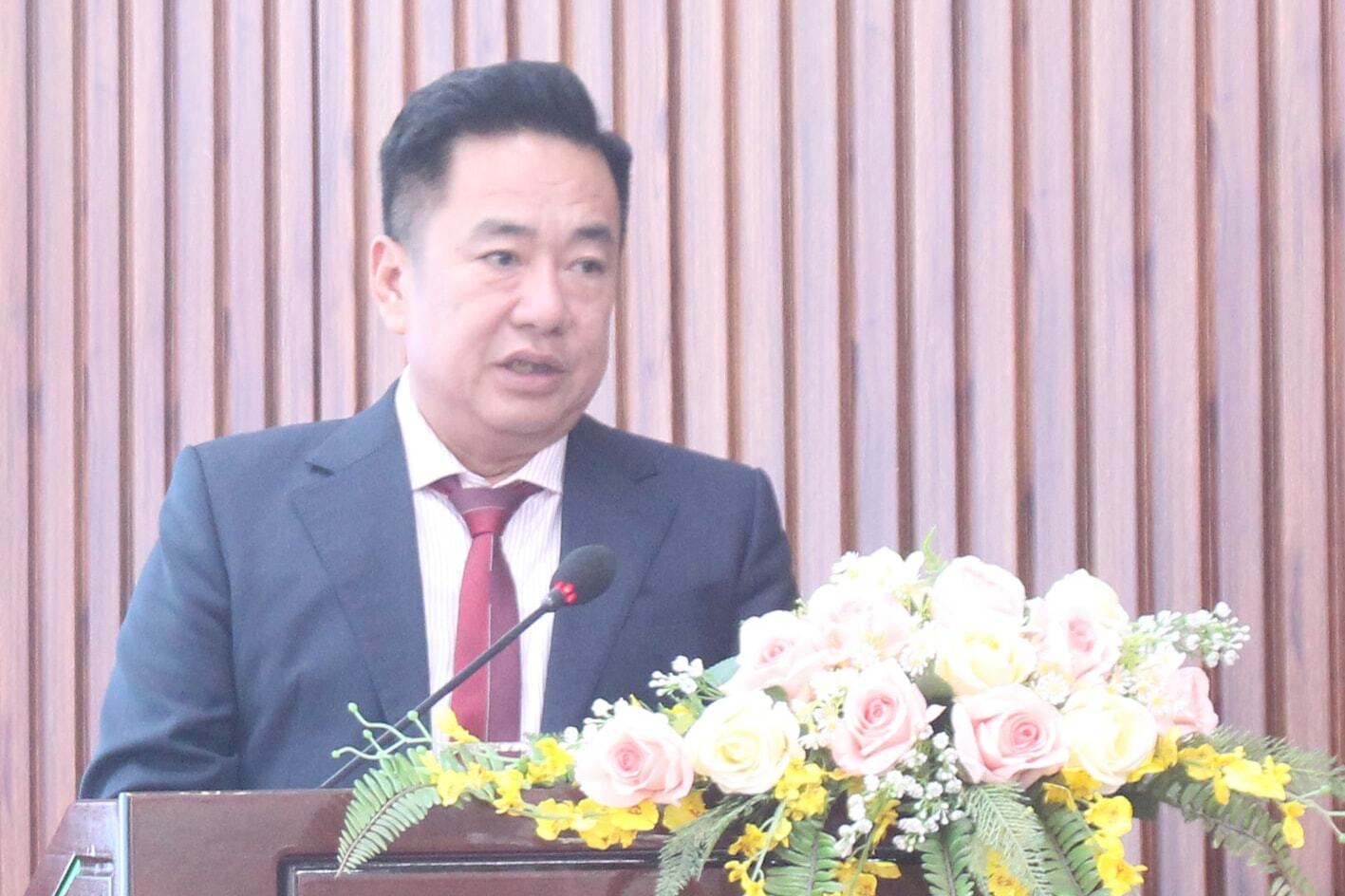 Phó Tổng Giám đốc NHCSXH Việt Nam Huỳnh Văn Thuận phát biểu giao nhiệm vụ cho Tân Giám đốc Chi nhánh NHCSXH tỉnh Lâm Đồng