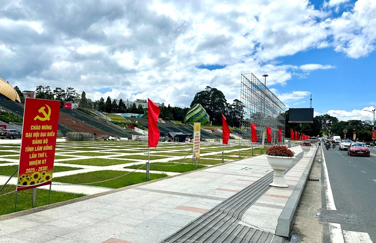 Các trục đường chính tại Đà Lạt được trang hoàng cờ hoa, pa-nô, khẩu hiệu chào mừng Đại hội đại biểu Đảng bộ tỉnh lần thứ I, nhiệm kỳ 2025 -