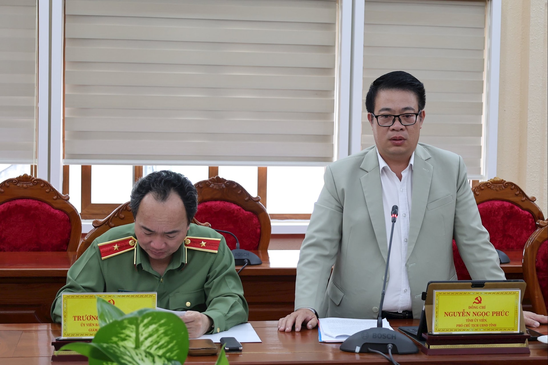 Giám đốc Công an tỉnh Trương Minh Đương đóng góp ý kiến về việc xây dựng trung tâm dữ liệu dùng chung của tỉnh