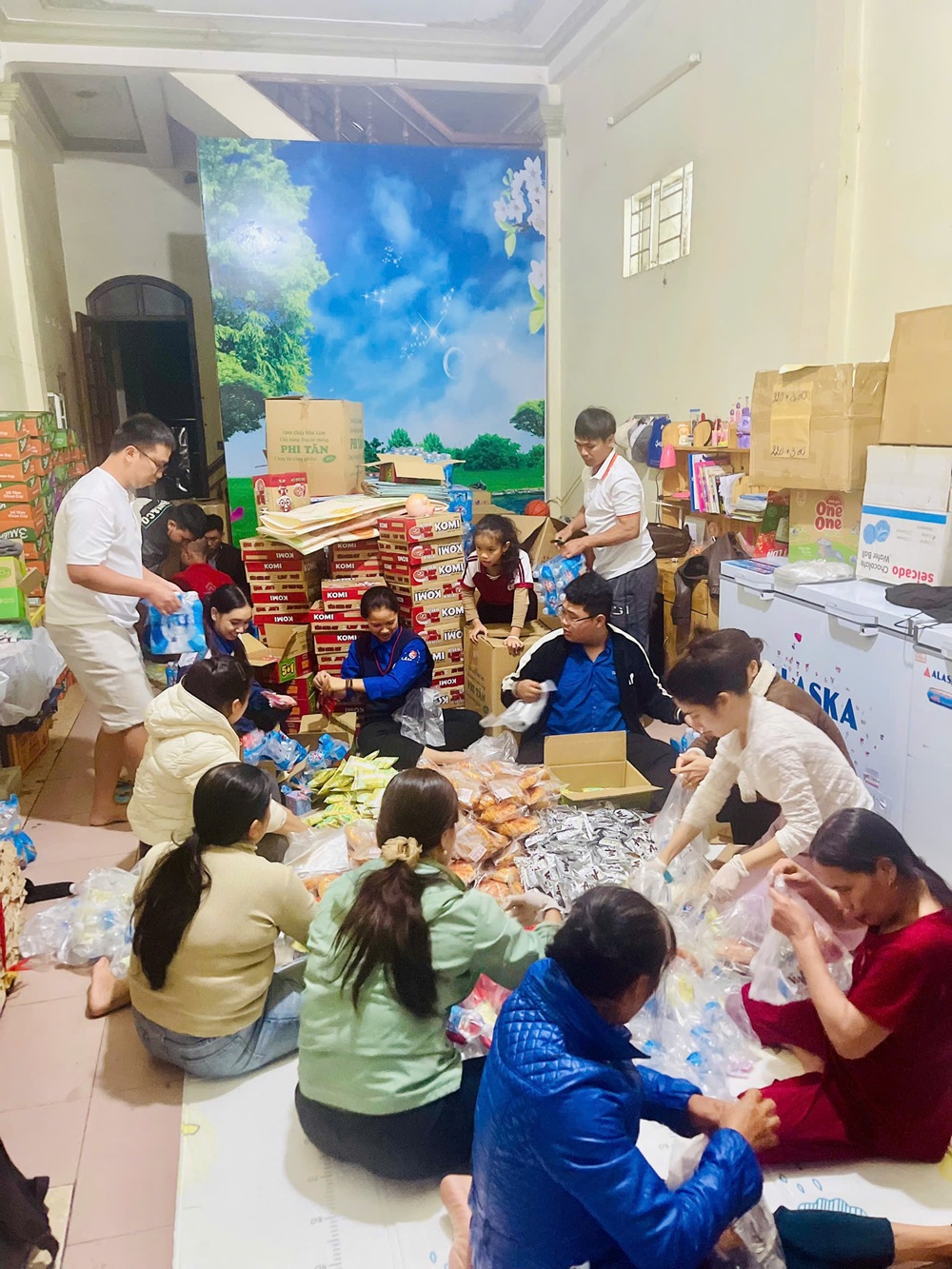 Những ngày trước khi xe khởi hành, không khí tại xã Đinh Văn Lâm Hà luôn rộn ràng tiếng nói cười. Người sắp xếp thùng mì, người đóng bao gạo, người kiểm đếm lại từng thùng sữa hay hộp thuốc. Hàng hóa được đóng gói cẩn thận, ghi rõ tên từng loại để khi đến nơi có thể phân phối nhanh và thuận tiện nhất.