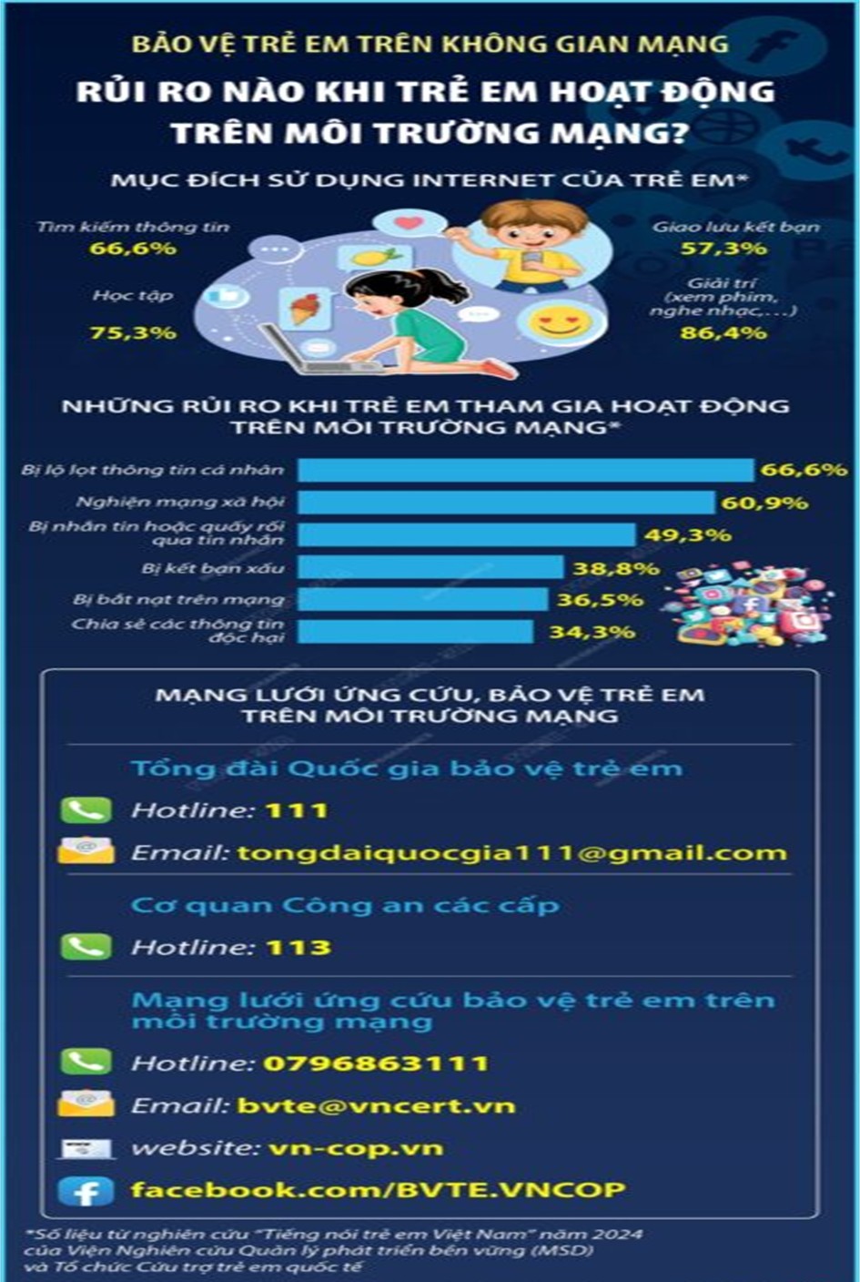 - Hướng dẫn con cần chia sẻ với cha mẹ, thầy cô giáo ngay khi gặp rắc rối trên mạng.