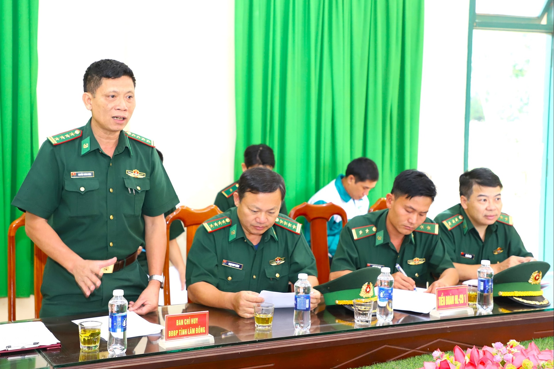 Đại tá Nguyễn Thành Đính, Chỉ huy trưởng Ban Chỉ huy Bộ đội Biên phòng tỉnh Lâm Đồng, phát biểu tại buổi làm việc với Đoàn công tác của tỉnh