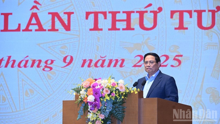 Thủ tướng Chính phủ Phạm Minh Chính phát biểu chỉ đạo tại Phiên họp thứ 4 (Ảnh Nhân Dân)